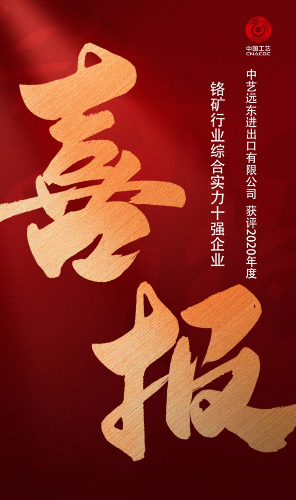中国工艺集团旗下中艺远东公司获评? “铬矿行业2020年度综合实力十强企业”