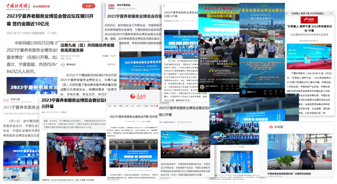 此次展会获得了来自人民日报、新华社、中央广播电视总台、光明日报、中国日报、中国新闻社、华夏时报、中国社会报、人民网、中国网等主流媒体,环球老龄、中国养老网等行业媒体,以及宁夏广播电视台、宁夏日报、宁夏新闻网等地方媒体的持续报道,全方位呈现出宁夏老博会的精彩盛况。