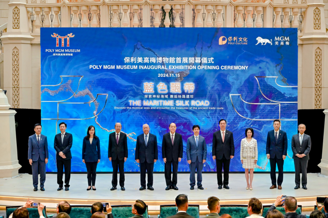 On November 15th, the opening ceremony of the Poly MGM Museum, jointly developed by Poly Culture and MGM, was held at the Grande Praça of MGM Macao. The event was attended by Mr. Ho Iat Seng (Chief Executive of the Macao S.A.R.), Mr. Edmund Ho (Vice Chairman of the Chinese People’s Political Consultative Conference), Mr. Lu Yuyin (Deputy Director of the Liaison Office of the Central People’s Government in the Macao S.A.R.), Mr. Liu Xianfa (Commissioner of the Ministry of Foreign Affairs of the People’s Republic of China in Macao S.A.R.), Mr. Li Qun (Vice Minister of the Ministry of Culture and Tourism of the People’s Republic of China and Director of the National Cultural Heritage Administration), Ms. Ao Ieong U (Secretary for Social Affairs and Culture of the Macao S.A.R. Government), Mr. Liu Hualong (Chairman of Poly Group), Mr. Zhang Hao (Director of Poly Group), and Ms. Pansy Ho (Chairwoman and Executive Director of MGM China Holdings Limited).