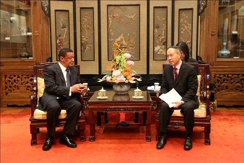 From July 8 to 15, president Mulatu of Ethiopia paid a visit to China, and attended the Eco Forum Global Annual Conference Guiyang 2014. President Zhang Zhengao met with him in Beijing on July 8.