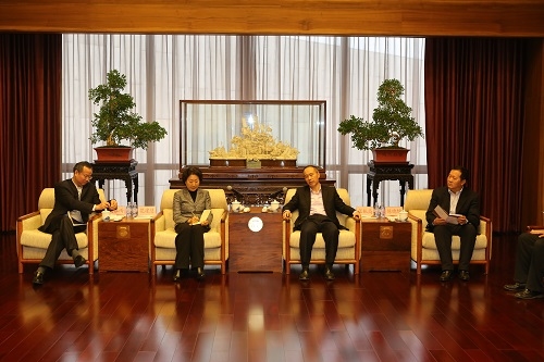 President Zhang Zhengao met with Hua Jianhui, vice governor of Anhui province in New Poly Plaza on Feb. 2, 2015. Both sides made exchanges on strengthening mutual strategic cooperation.