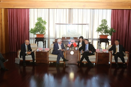 On June 19th, Chairman Xu Niansha met with Christopher Dodd, President of MPAA(The Motion Picture Association of America)at New Poly Plaza. Vice President Zhangxi accompanied the meeting.