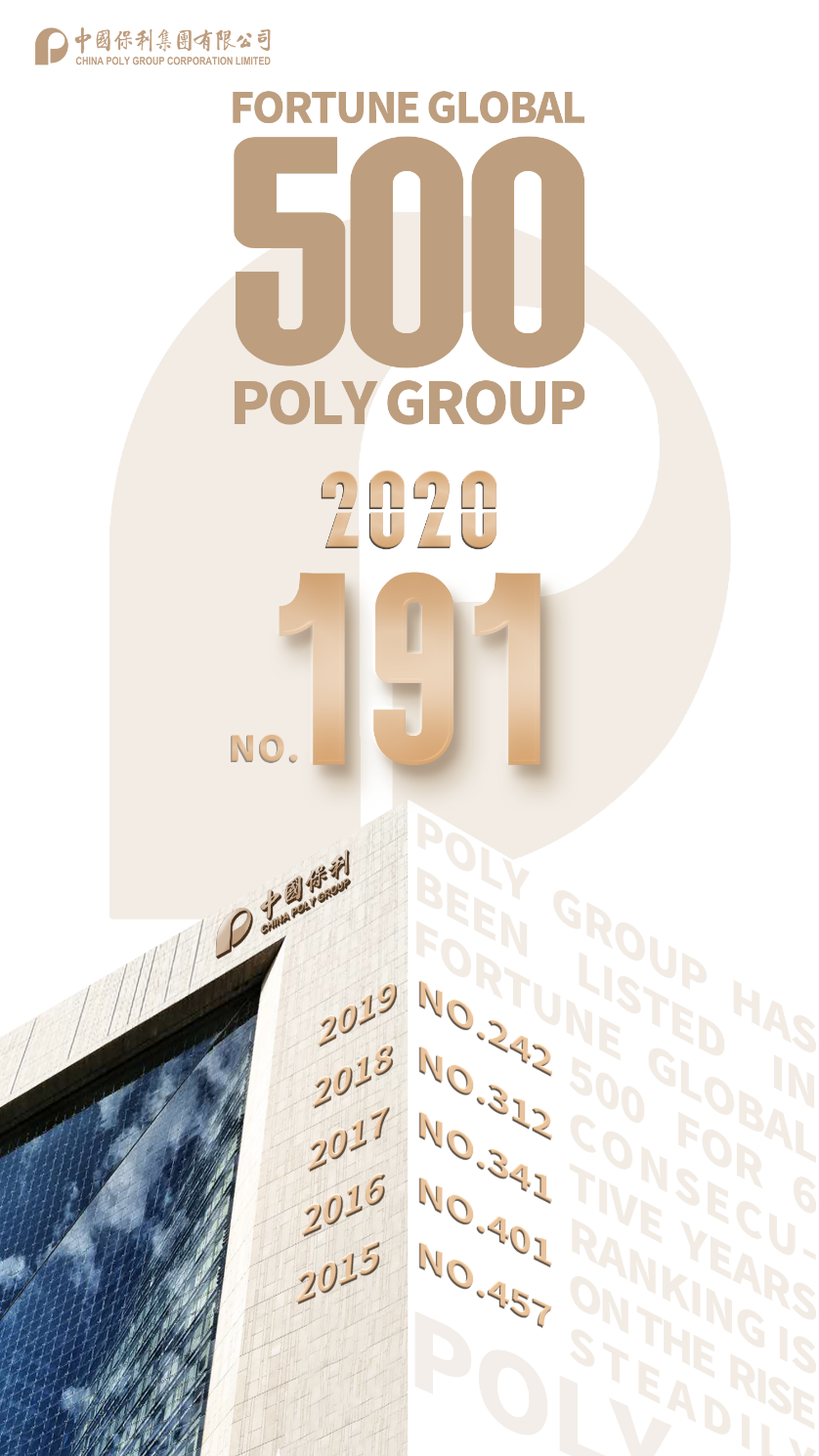 On August 10th, 2020 Beijing Time Fortune Global 500 of 2020 was published. Poly Group has been listed in this list for 6 consecutive years, with ranking rise to a new high of the 191st.