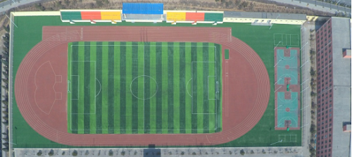 巡镇中学“巡中保利体育场”鸟瞰图(含球场、跑道、主席台、篮球场)