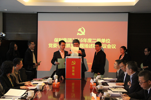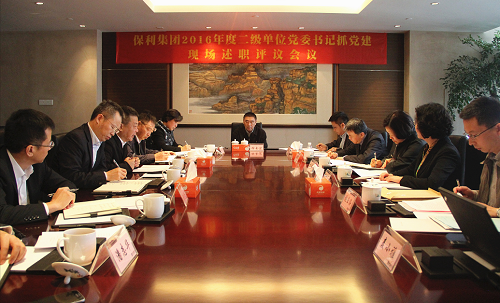 2017年2月28日上午,集团公司在广州召开2016年度二级单位党委书记抓党建现场述职评议会议。保利地产作为述职评议试点单位,党委书记、董事长宋广菊进行了现场述职。集团公司述评考领导小组组长、党委书记、董事长徐念沙,集团机关党委副书记、党群工作办公室主任徐碚, 集团机关党委委员、行政管理中心主任孔峻峰,保利地产党委副书记付俊,保利国际党委委员、纪委书记曹文素等集团公司述评考小组成员及保利地产20名基层代表出席会议。